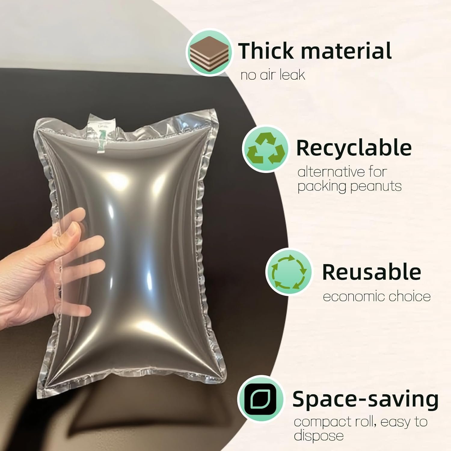 แตกต่างจากการยัดกระดาษหรือวัสดุแข็งทั่วไป นวัตกรรม Air Pillow Technology ของเรา สามารถปรับระดับความแน่นได้ตามต้องการ ช่วยกระจายน้ำหนักอย่างสม่ำเสมอ เพื่อให้กระเป๋าของคุณดูสวยงามและคงสภาพเหมือนใหม่เสมอ