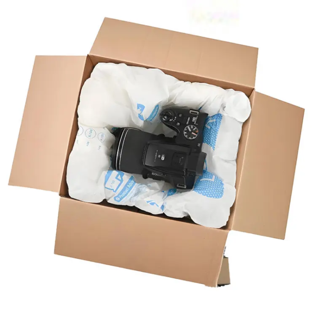 3. วางถุงโฟมลงในกล่อง : นำถุงโฟมที่เริ่มพองตัว วางลงในกล่องบรรจุภัณฑ์